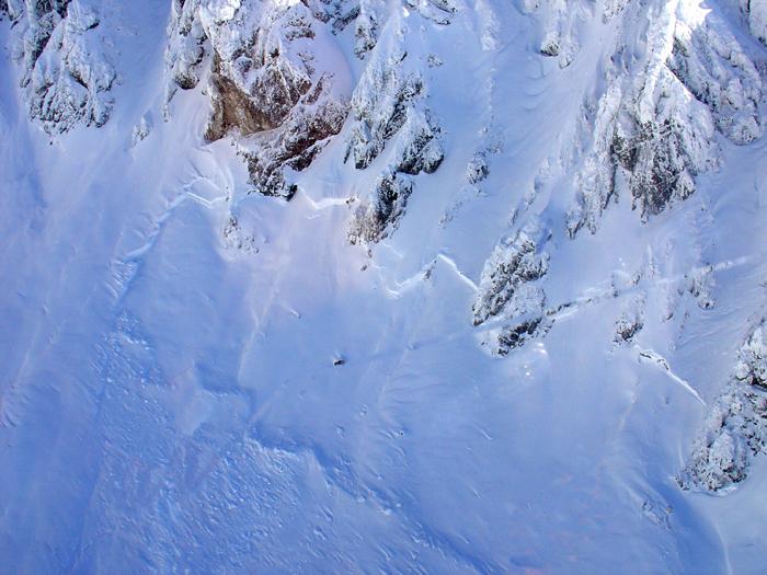 Werner und ich bedanken uns herzlich bei Michael Butschek für die Möglichkeit, am Erkundungsflug teilzunehmen. Besonders auffallend war dabei, dass in vielen schattseitigen Bereichen des Gosaukamms und auch im Tennengebirge sowie in der Koraingruppe auf der ausgeprägten Schwimmschneeschicht riesige Schneebretter mit Anrisshöhen bis zu 2,5 m weggebrochen sind. Aber auch im Leebereich ( auf allen sonnseitigen Hängen ) haben sich große Schneebretter gelöst. Sonnseitig hat sich die Schneedecke heute sehr gut gesetzt, da gibt es morgen bestimmt einen Bruchharschdeckel. Schattseitig wird es wohl noch länger gefährlich bleiben.