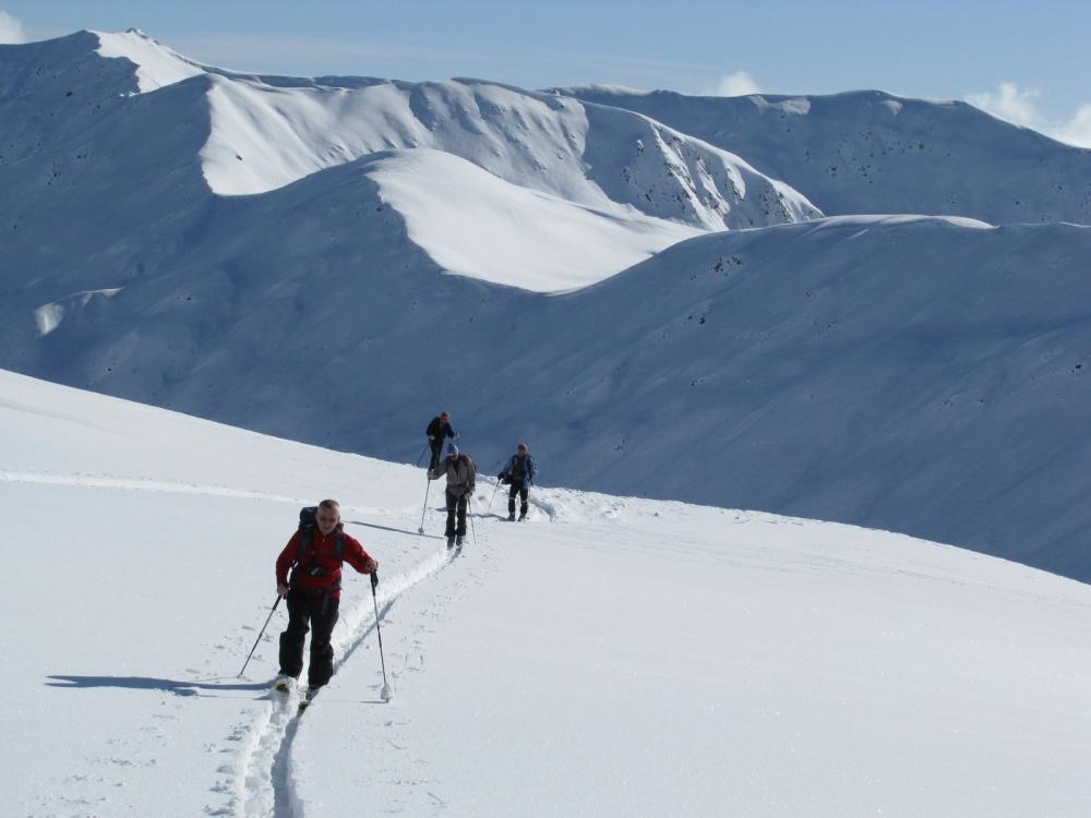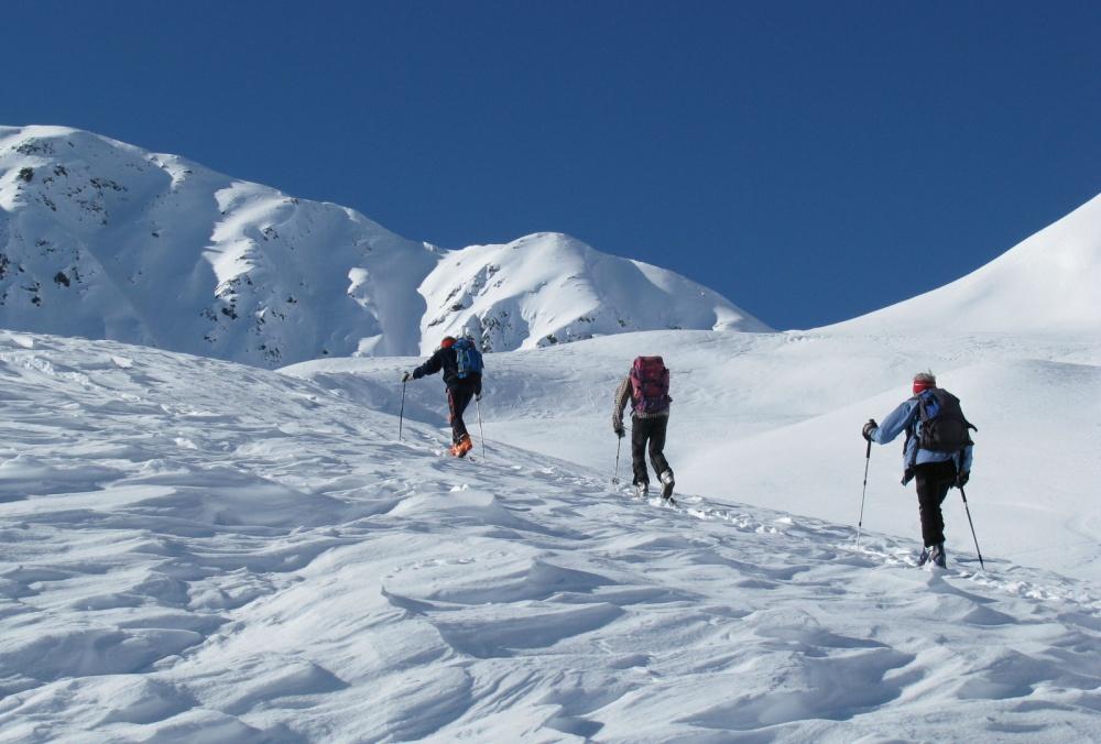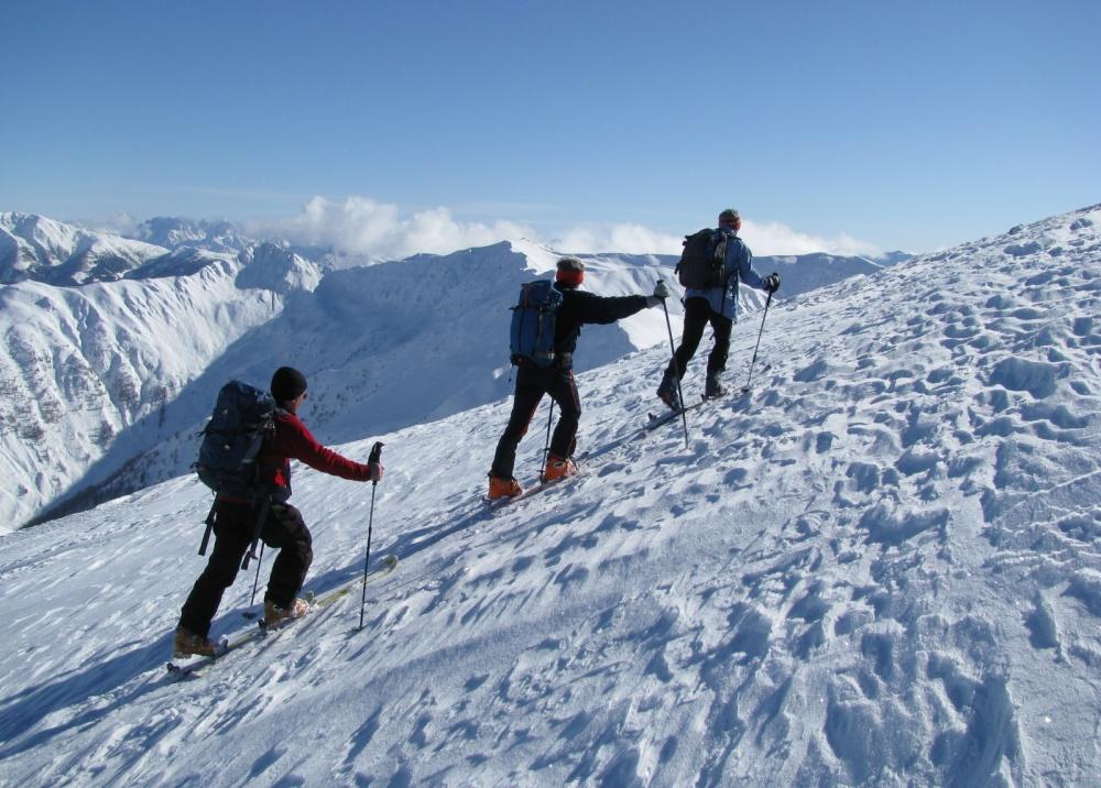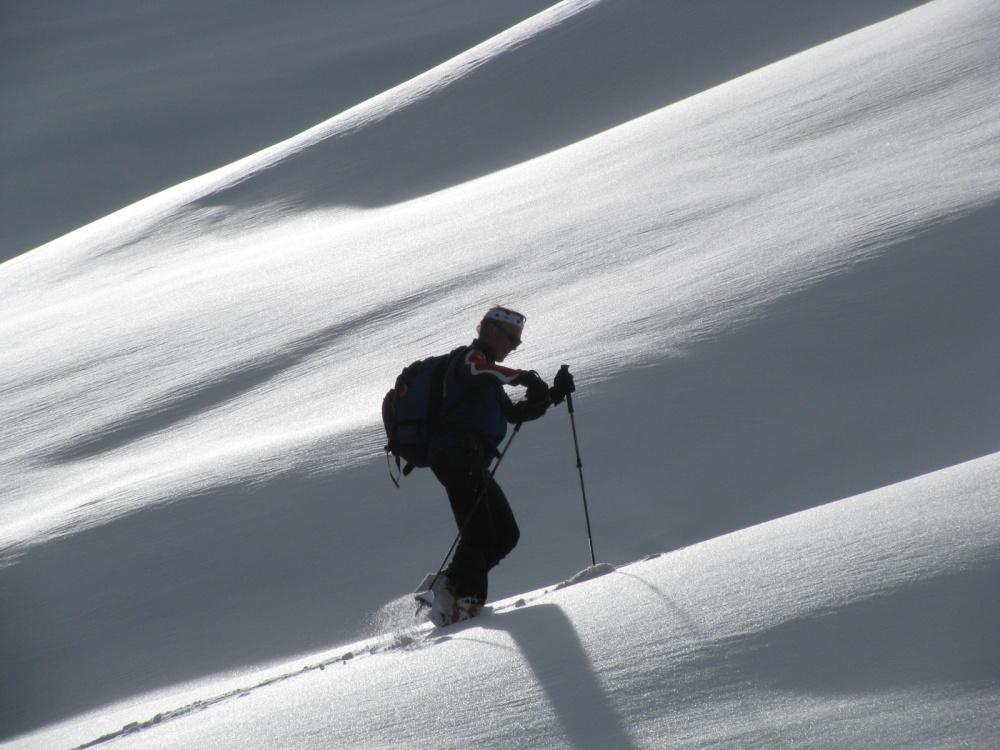 Die riesigen freien Hänge oberhalb der Baumgrenze sind großteils im jungfräulichen Zustand, Warnstufe 3!