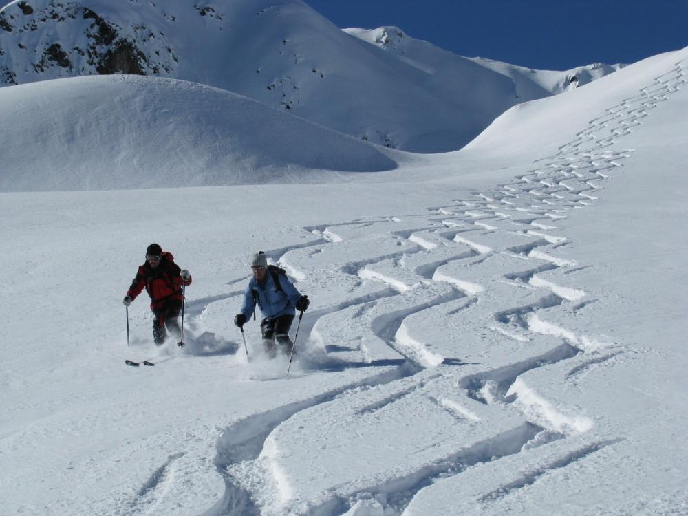 Waren vier Tage auf Kurzvisite im "Tiefschneeparadies". Montag, Dienstag leichter Schneefall, Mittwoch, Donnerstag Traumwetter und fast nur unverspurte Traumhänge.