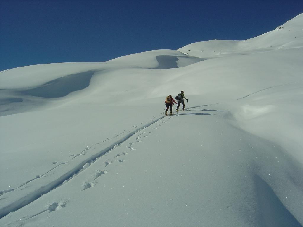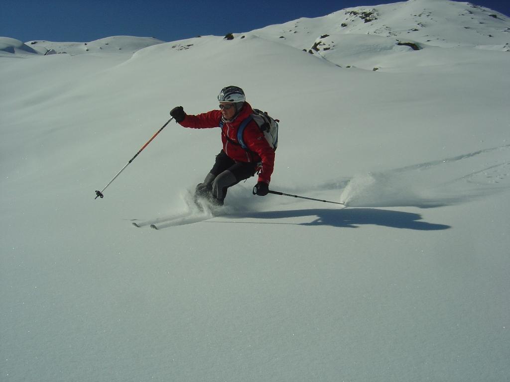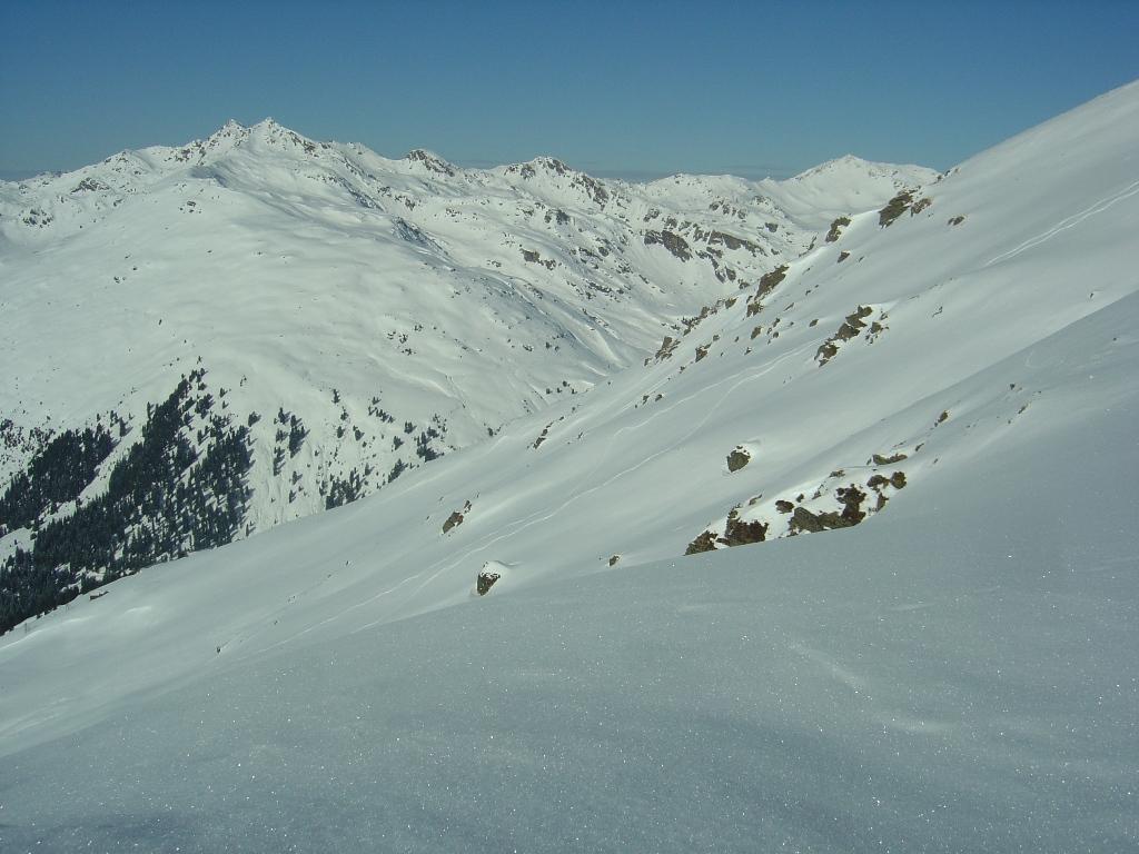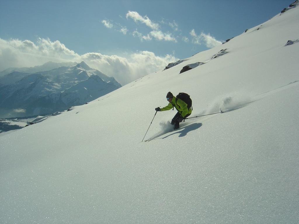 Vom Ronachwirt geht`s heute über die Putzalm auf unseren heutigen Gipfel. Von oben bis unten 15 - 20 cm feinster Pulver, strahlender Sonnenschein, lediglich im Gipfelbereich starker Südwind.