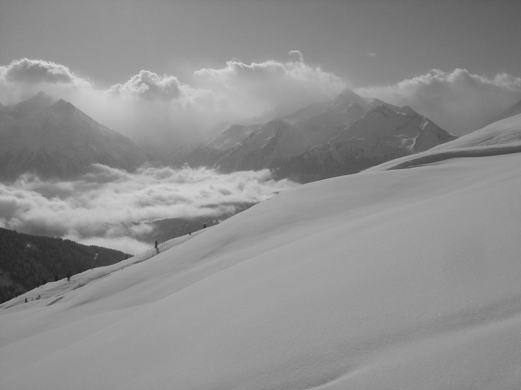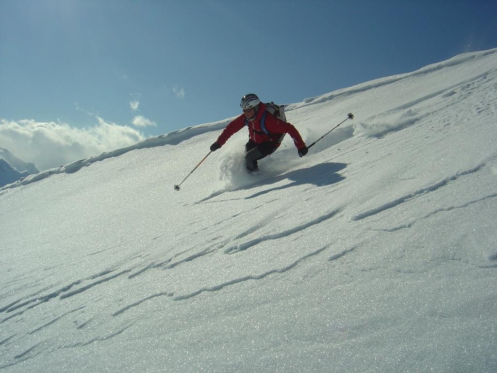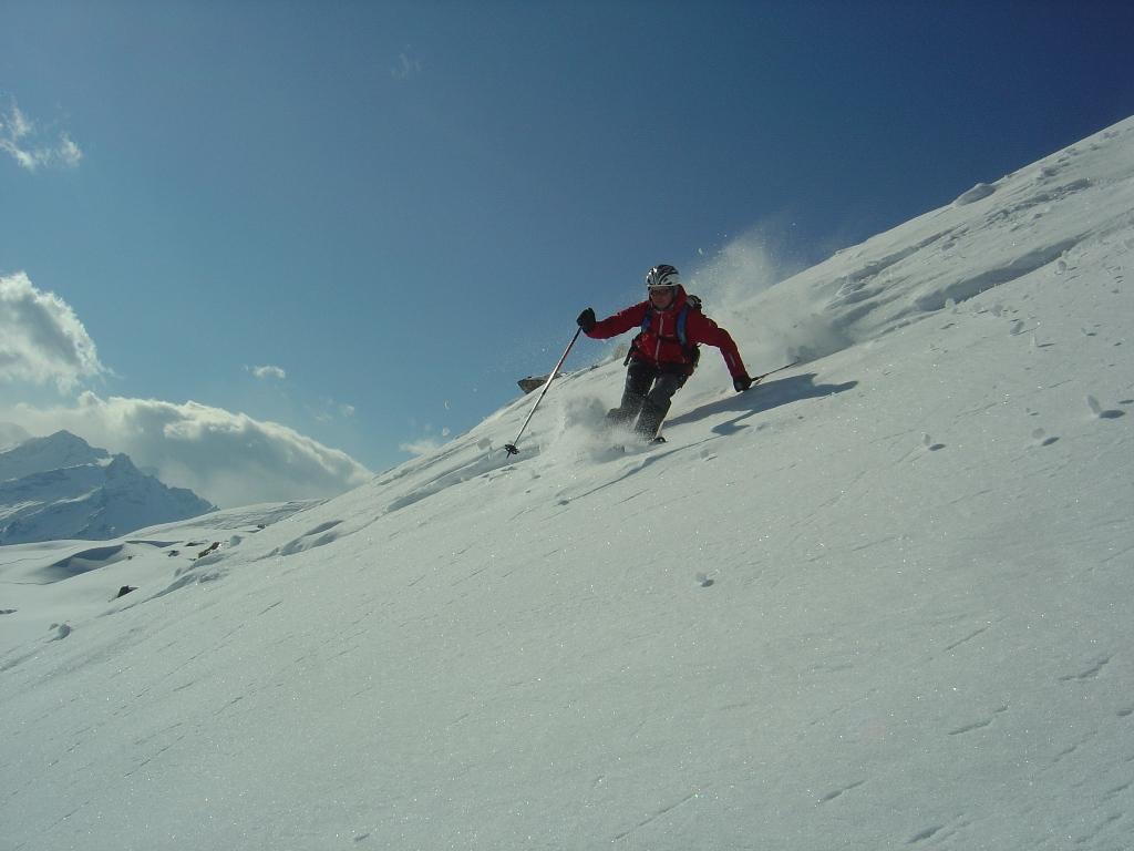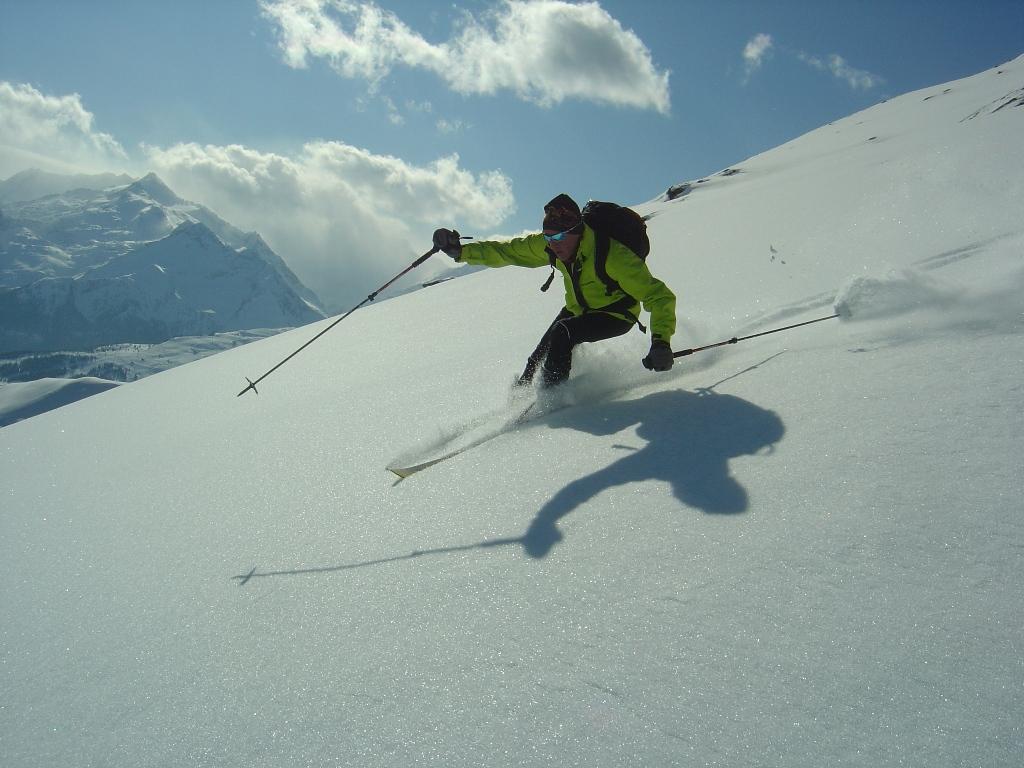Vom Ronachwirt geht`s heute über die Putzalm auf unseren heutigen Gipfel. Von oben bis unten 15 - 20 cm feinster Pulver, strahlender Sonnenschein, lediglich im Gipfelbereich starker Südwind.