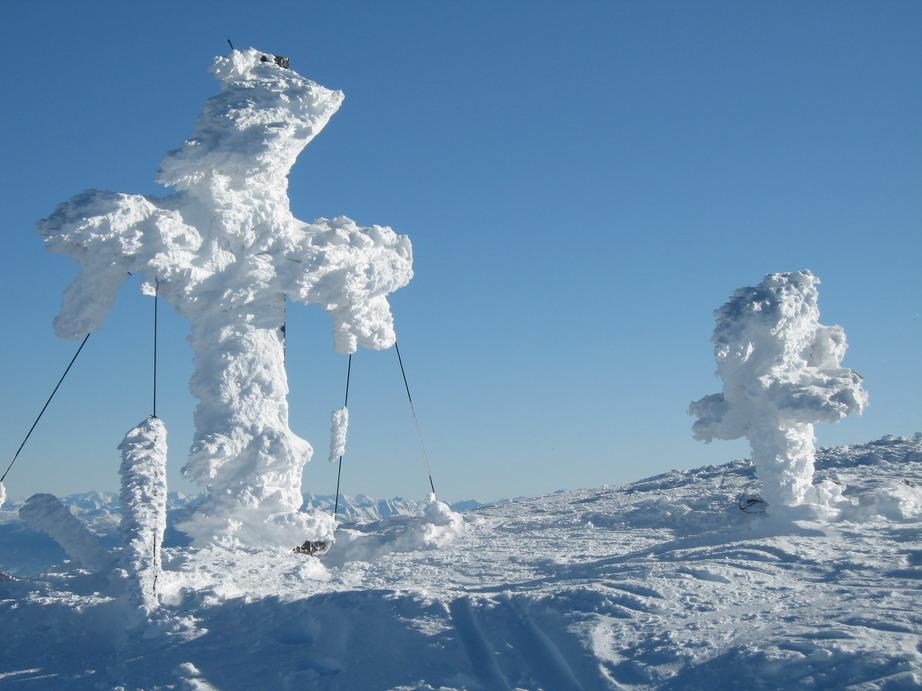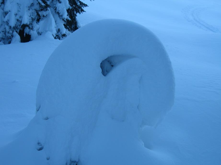 Unerwartet gute Schneeverhältnisse mit gigantischen Schneegestalten aber sehr sicheren Abfahrten.