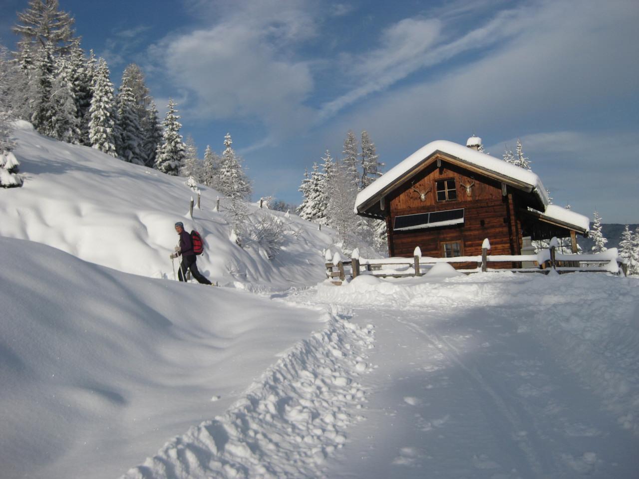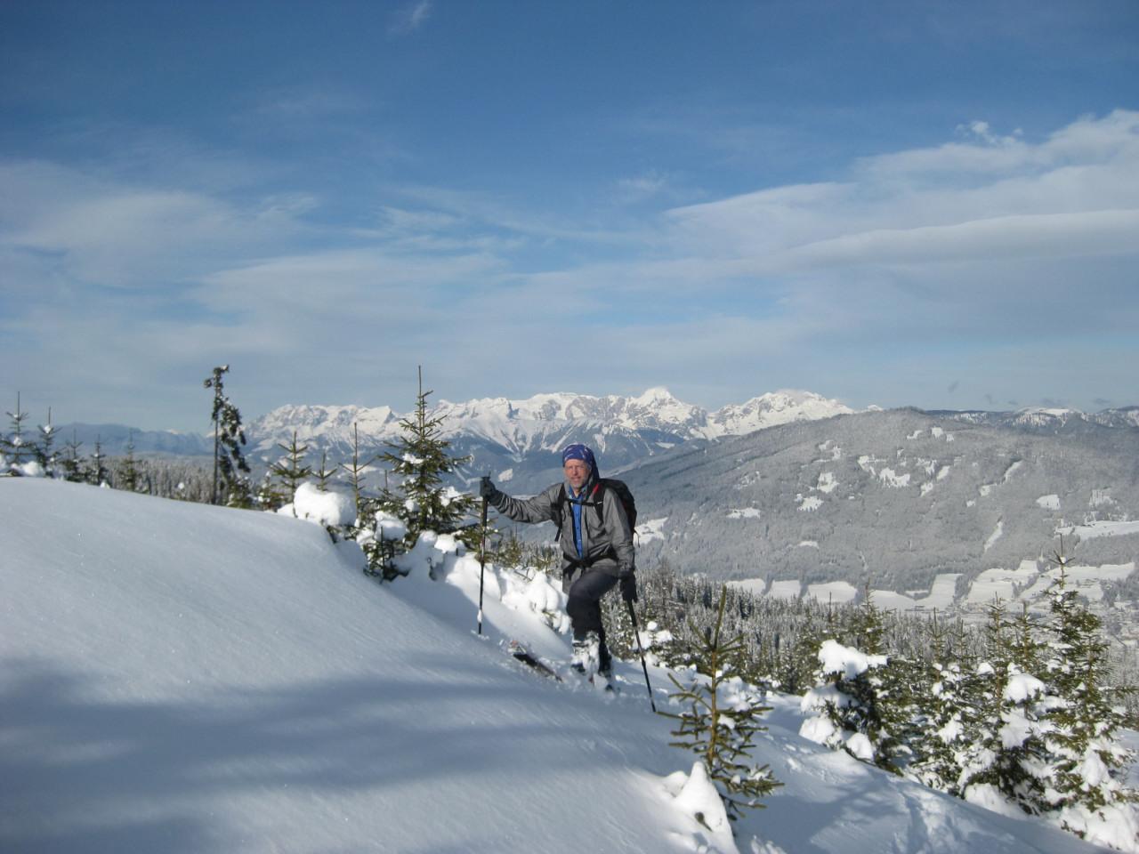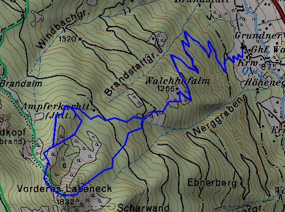 Einsamer Tag am Vorderen Labeneck. Vom Gasthof Walchhof geht eine geräumte Pulverschnee-Forststraße gemütlich bis zur Walchhofalm. Danach heißt es bis zum Gipfel im leicht gesetzten 30cm Pulverschnee spuren. Im Kammbereich besteht leichter Windharsch. Die steile direkte Abfahrt vom Gipfel nach Ost ist zu empfehlen, es bestehen wenig Einwehungen, aber auch kein Steinkontakt. Der Aufstiegsweg über den NO-Rücken ist für die Abfahrt zu flach. Am Nachmittag ist der Pulverschnee schon leicht angefeuchtet. Es gibt keine lawinenrelevante Beobachtungen.