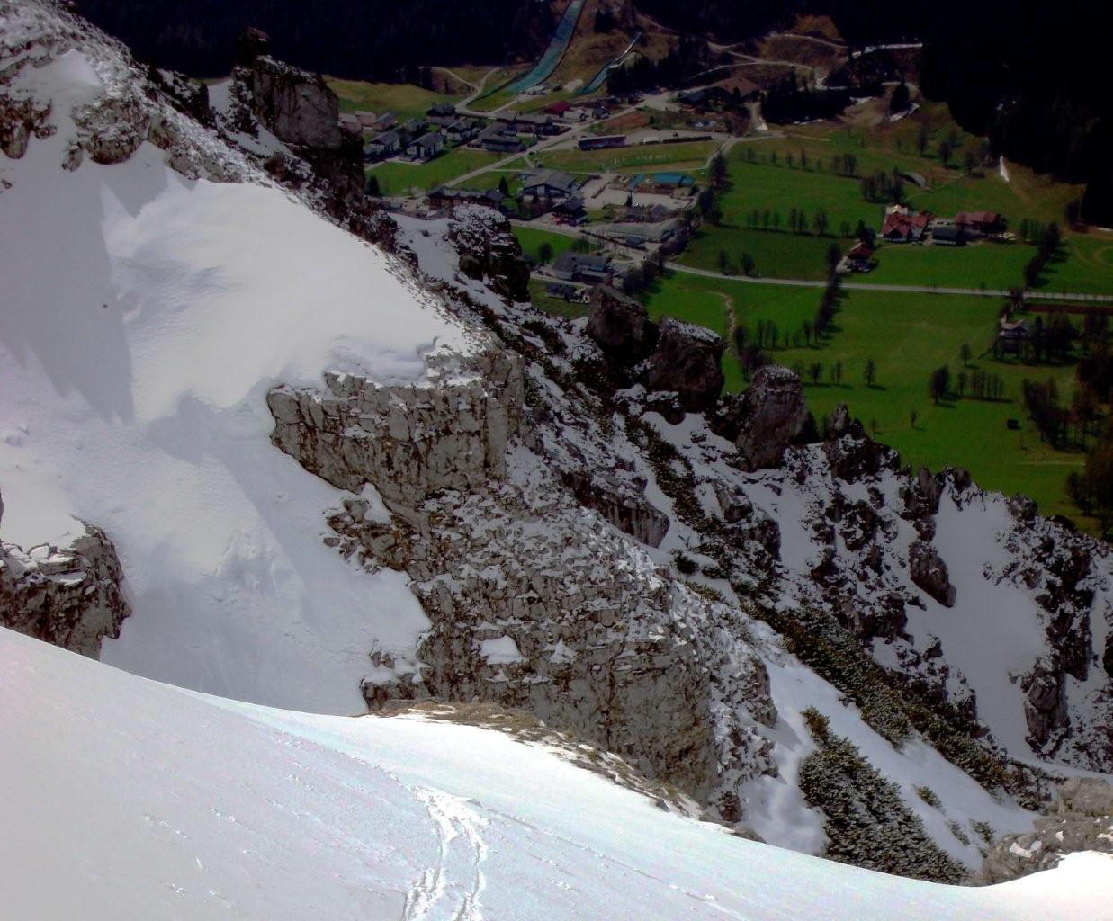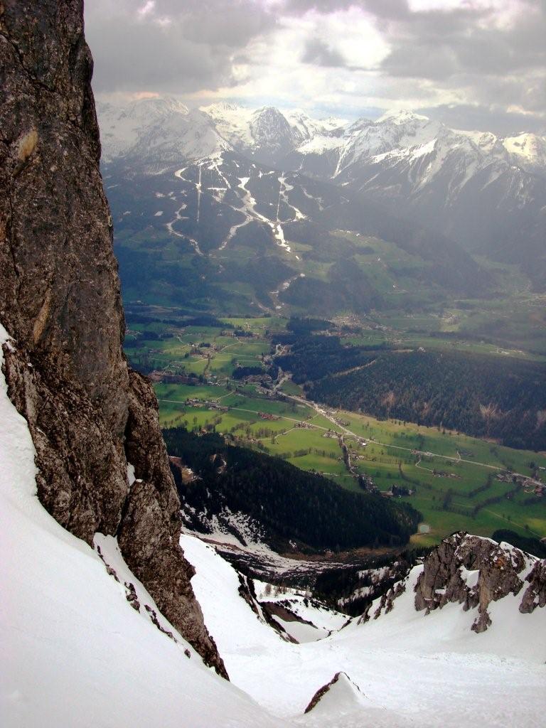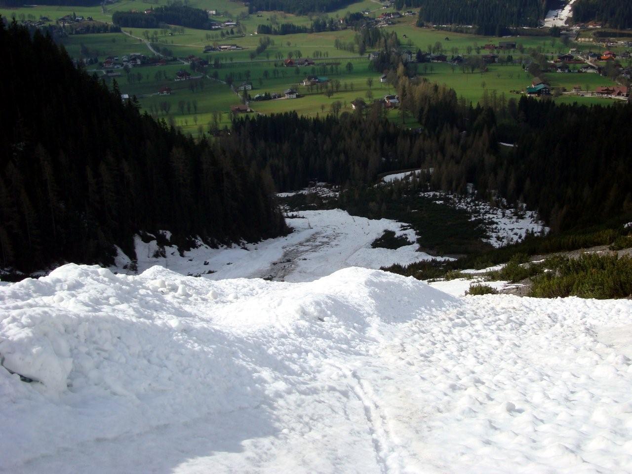 Während in Salzburg noch fleißig die Tourengeher unterwegs sind, scheinen diese in der Ramsau eine Pause eingelegt zu haben. Dies könnte am hereinbrechenden Frühling (erste Rasenmäher in der Ramsau unterwegs!) sowie an den noch diese Woche andauernden Revisionsarbeiten der Südwandbahn liegen, jedoch sicher nicht am Schneemangel (650cm am Gletscher). Wenn man direkt von der Ramsau mit den Tourenschiern weggehen möchte gibt es nur eine Möglichkeit ...