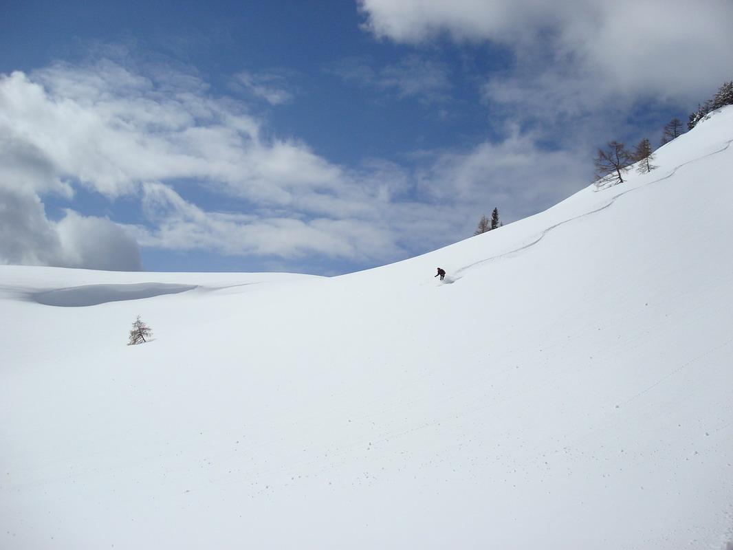 Nachdem nach den letzten warmen, regenreichen Wochen die Schitourensaison in der näheren Umgebung der Stadt Salzburg schon beendet schien, ist in den letzten Tagen nocheinmal genug Schnee für eine Verlängerung der Tourensaison gefallen. Nach anfänglichen Schneefällen bis in die Niederungen, dürfte es am Vortag nocheinmal bis ca.1500 m geregnet haben, ehe es wieder abkühlte und in der Nacht ca.10 cm kalter Pulverschnee fielen. Oberhalb von 1500 m liegen insgesamt ca.40 bis 60 cm frischer Pulver, der zum Teil vom Südwestwind massiv verfrachtet bzw.bearbeitet wurde!