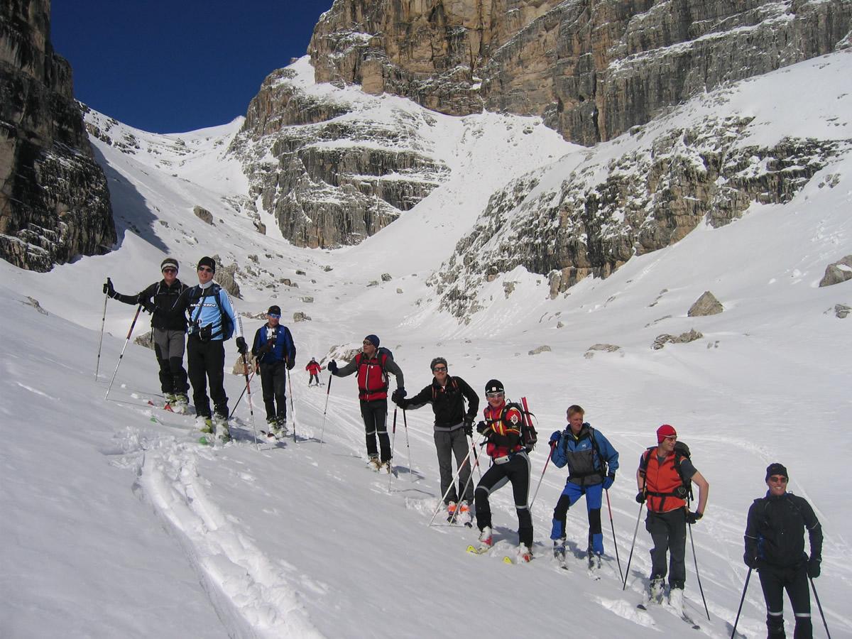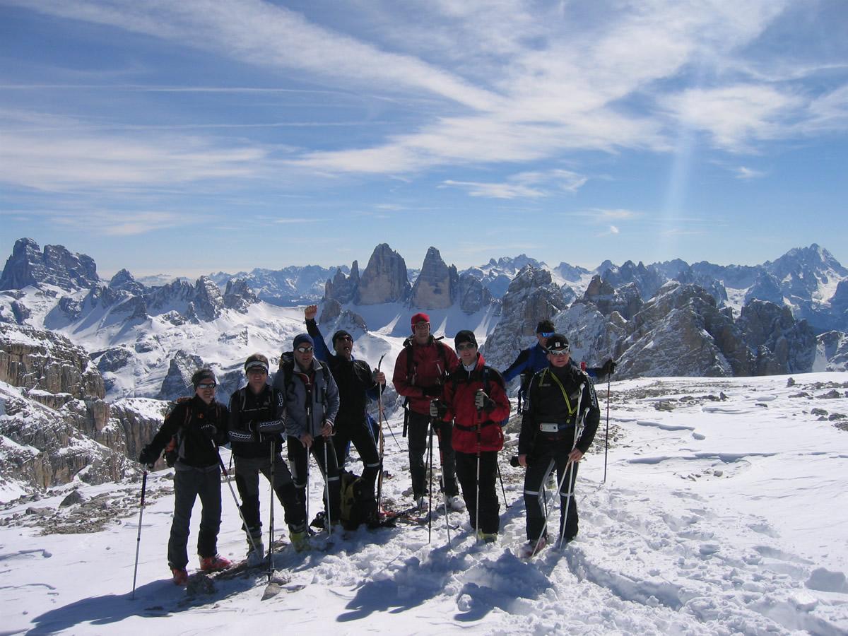 Aufstieg über Dreischusterhütte zum Hochebenkofel durchs Hangalpental (1597 HM ca. 3 Std. Aufstieg, 11 Mann); Exposition SO,O; Stufe 3