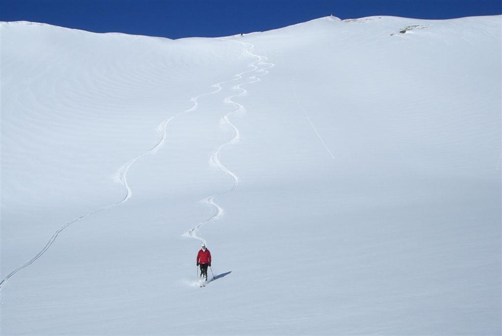 Schnelle Vormittagstour auf den Spieleckkogel in Hinterglemm, ausgehend von der Bergstation des Spieleckkogelliftes. Bei der Abfahrt um ca. 10:00 Uhr war der Schnee südseitig bereits angewärmt.