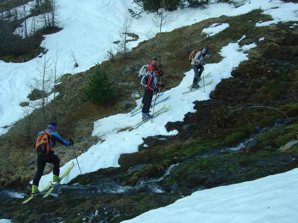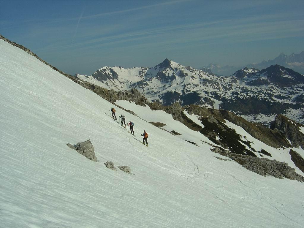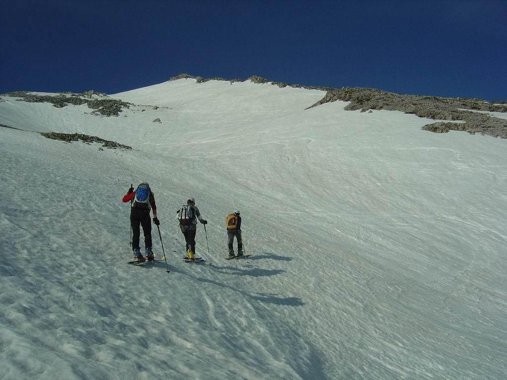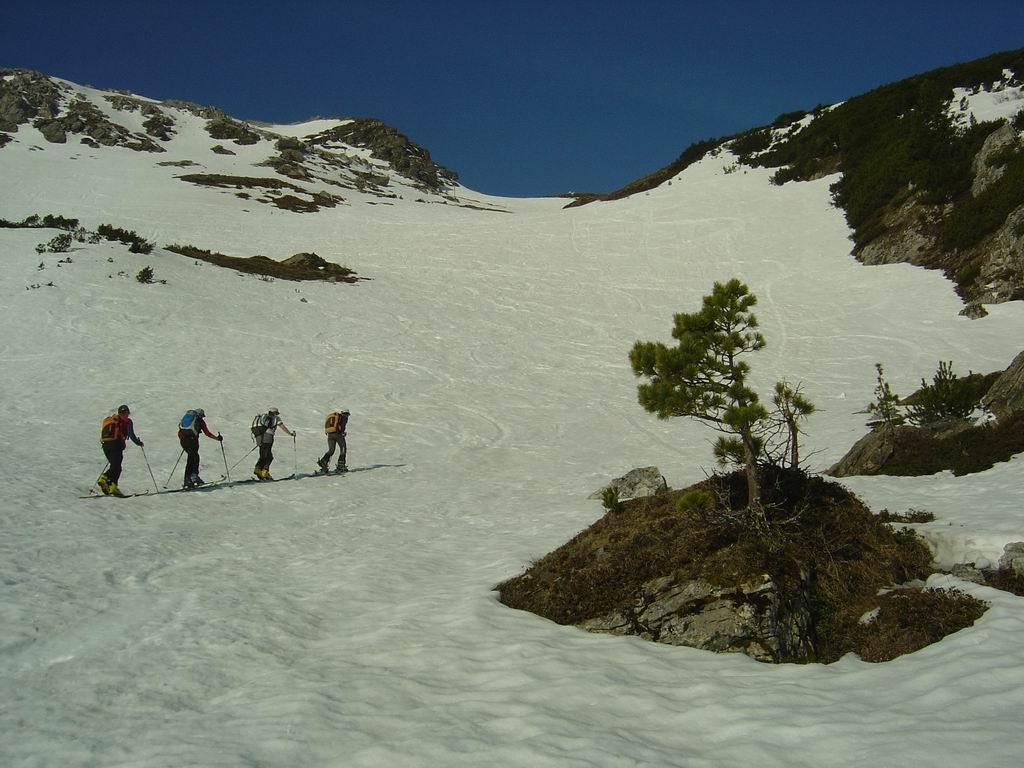 Wegen der guten Verhältnisse am Obertauern nahmen wir heute nochmals die Große Kesselspitze in Angriff. Der Anstieg erfolgte wieder durch den Schaidberggraben. Bei perfektem Firn fuhren wir heute über die herrliche Südflanke ab. Weiter gings über kupiertes Almgelände zur Gastalm. Kurz danach war dann ein halbstündiger Fußmarsch bis zur Straße nötig. Mit dem Zweitauto gings dann zum Ausgangspunkt zurück.